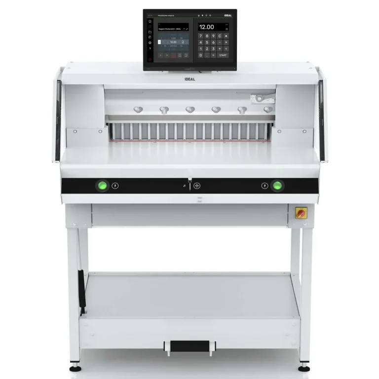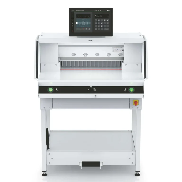 - Schnitthöhe bis 80 mm – ideal für Papierstapel oder Broschüren bis ca. 800 Blatt