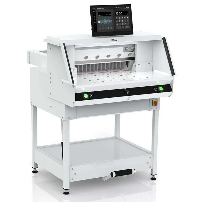IDEAL 5560 Stapelschneider, elektrisch, Schnittlänge 550 mm, Schnitthöhe 95 mm, automatischer Pressung, programmierbarer Rückanschlag, Lichtschranke
